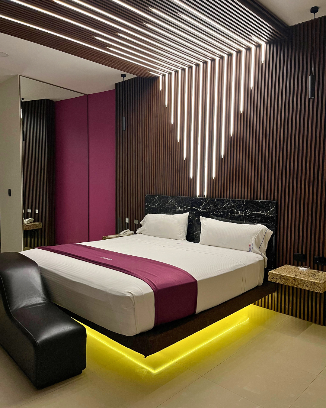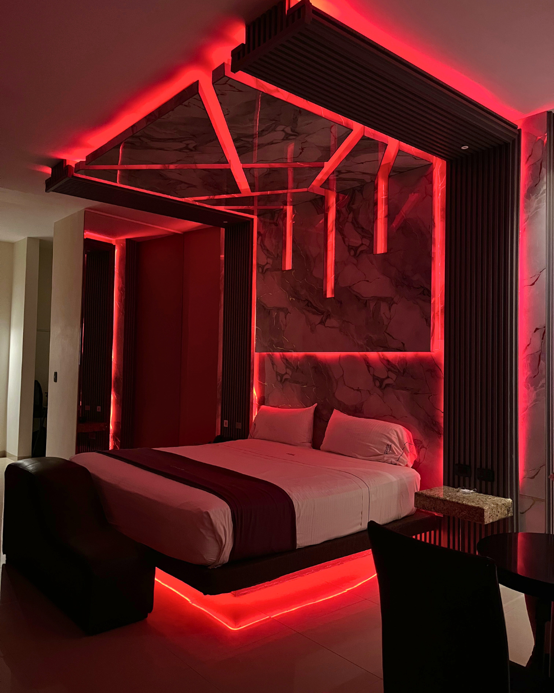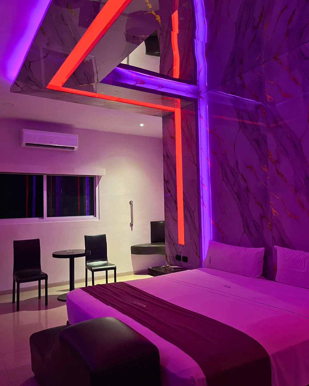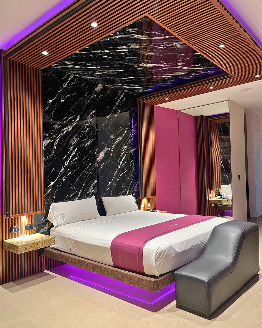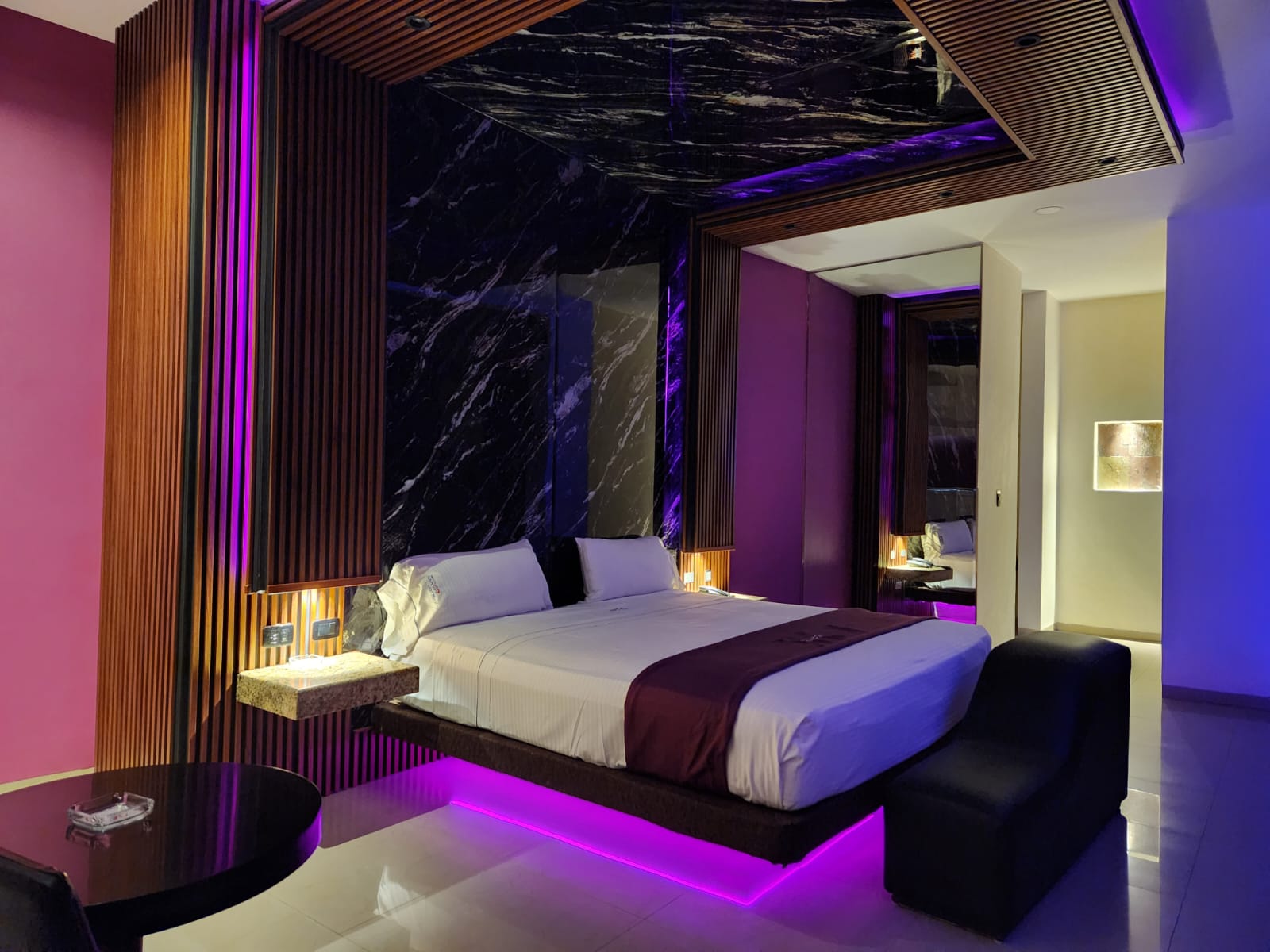 Disfruta de cada detalle diseñado para encender tus sentidos y crear el escenario perfecto para tus momentos más íntimos. Desde nuestras irresistibles camas King Size que te invitan a perderte en el placer, hasta una iluminación suave y envolvente que llena el ambiente de misterio y deseo... todo está preparado para que vivas una experiencia que querrás repetir.
